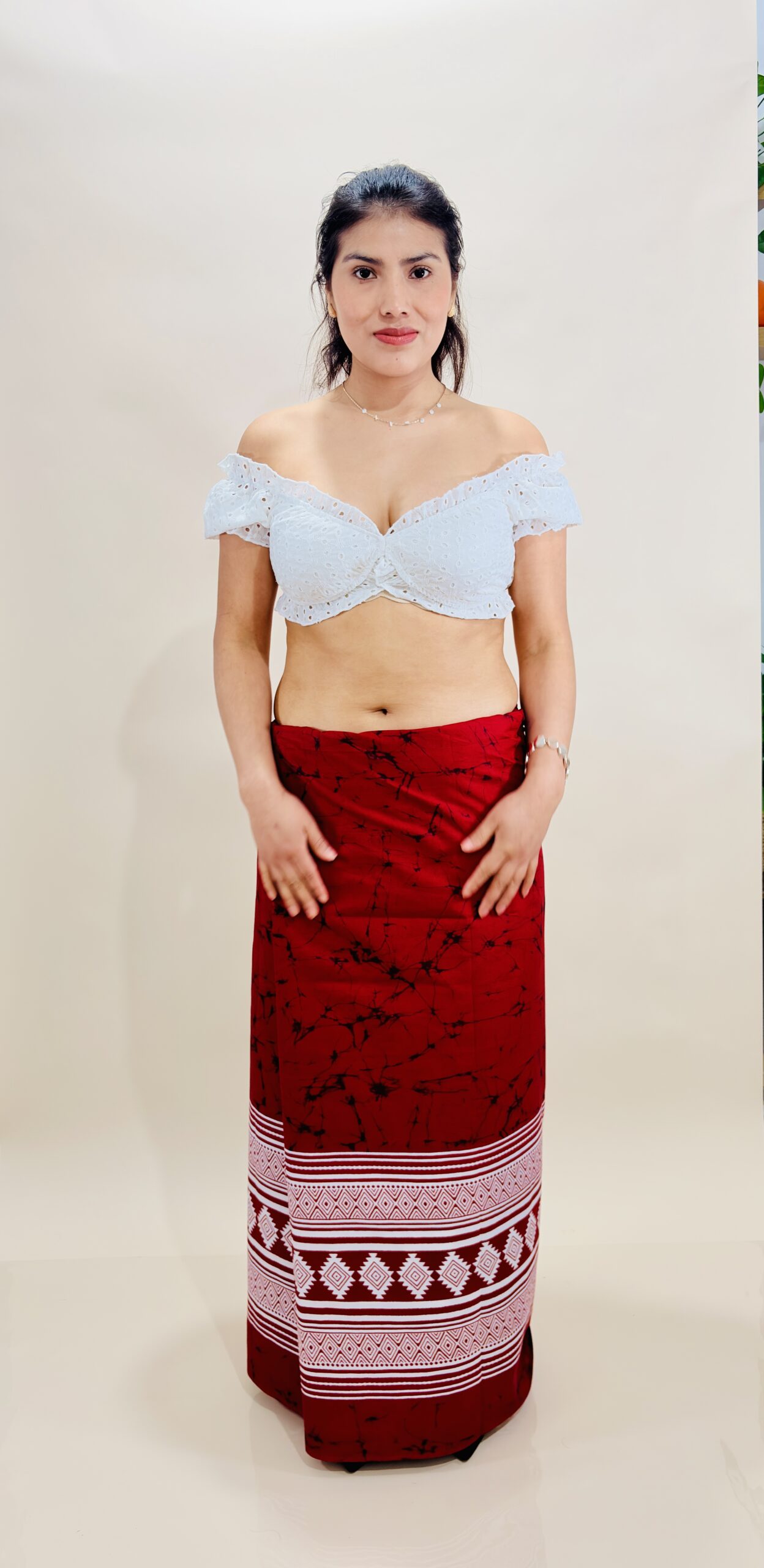 Unisex - Red & White Printed Cotton Sarong quantity