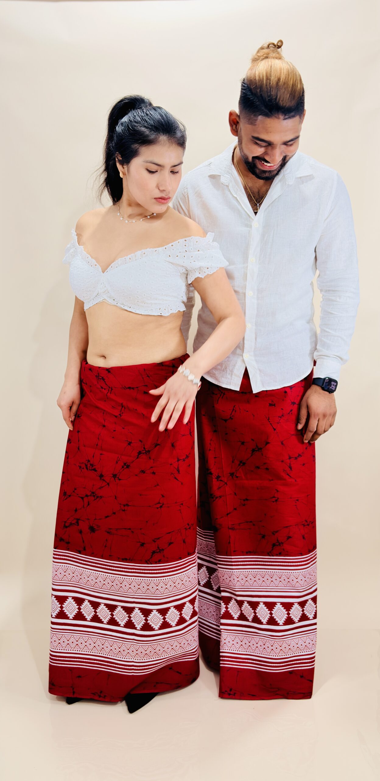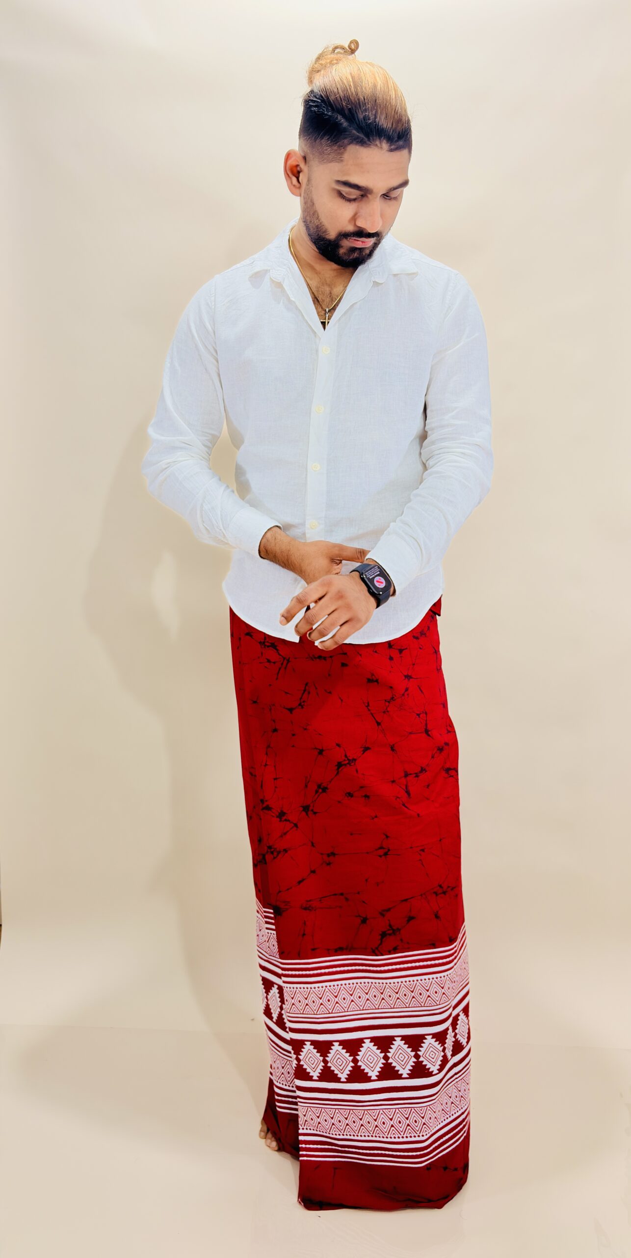 Unisex – Red & White Printed Cotton Sarong